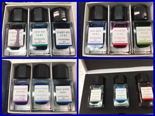 ★ PILOT インク★ 色彩雫★ 朝顔・もみじ・竹林・冬将軍・孔雀・冬柿・山柿・松露・月夜など3色入り4箱(12色)