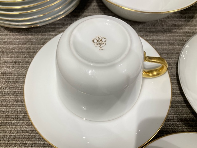 大倉陶園 OKURA カップ&ソーサー プレート ボウル 大皿 ゴールドライン 金彩 セット まとめ
